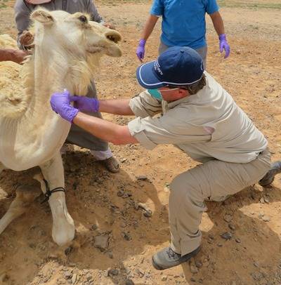 Juergen Richt, director of CEEZAD at K-State, and Chester McDowell, a CEEZAD research assistant, worked with scientists from the NIH and faculty in veterinary medicine from the Jordan University of Science and Technology (JUST) on the project, which focused on identifying the MERS Coronavirus (MERS-CoV) in camels. The NIH team was led by Vincent Muenster, an expert on the study of MERS. The research team spent much of its time collecting sera and various swabs from camels living in the northeastern part of Jordan near that nation’s borders with Iraq, Saudi Arabia and Syria, finding the virus in young camels. Richt termed the effort "very successful."